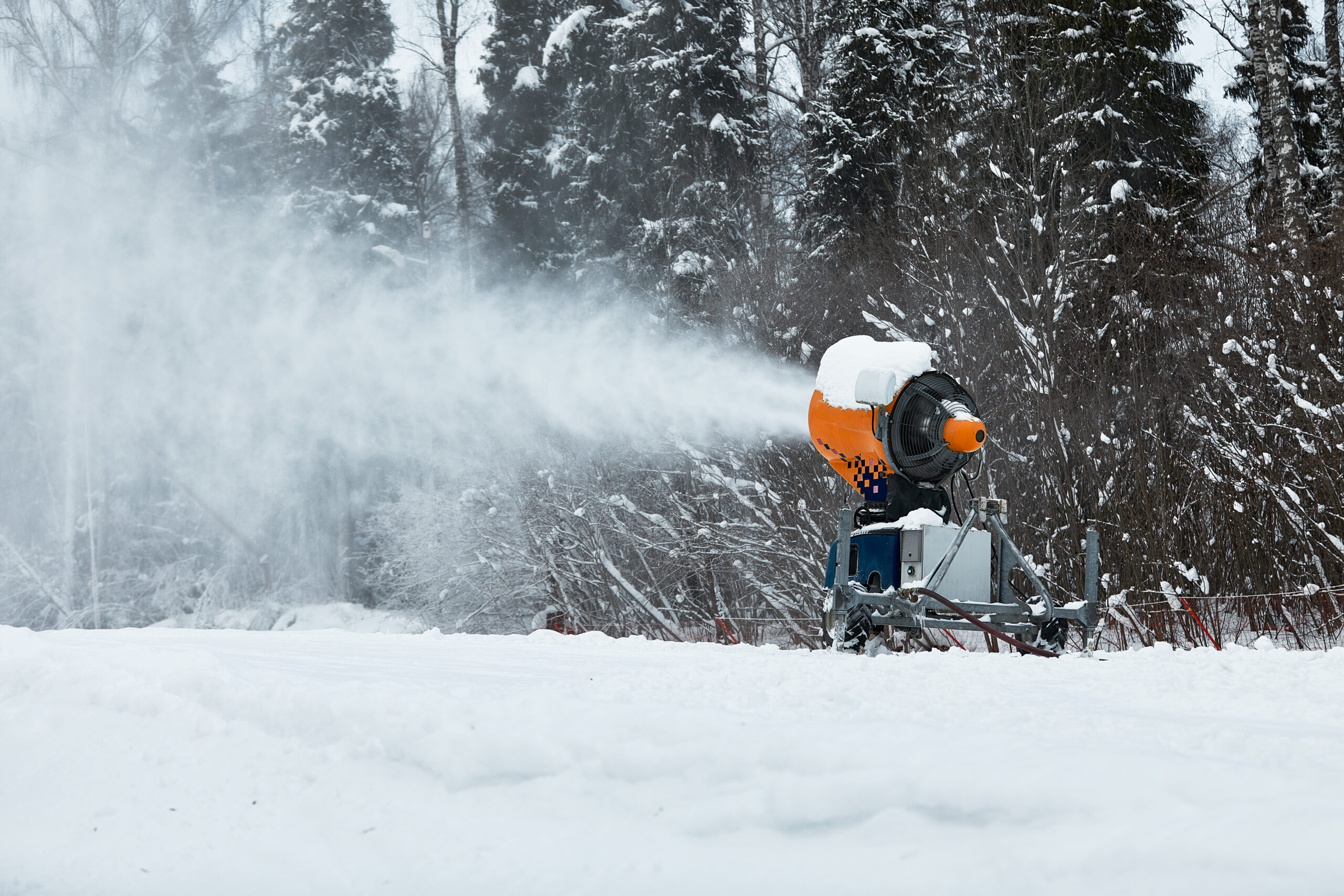 Snow cannon spraying out a fresh dusting of snow on the ski slopes